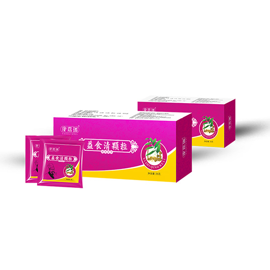 產品描述:【品名】益食清顆粒【類別】固體飲料【配料】萊菔子、丁香、山楂、山藥、麥芽、谷芽、雞內金【性狀】棕色顆?!疽幐瘛?克/袋12袋【凈含量】36克【建議食用方法和食用量】開水沖服,成人一次兩袋,兒童一次一袋,一日兩次【不適宜人群】嬰幼兒及孕產婦【貯藏方法】