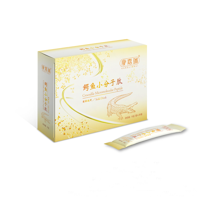 產品描述:鱷魚小分子肽:美白抗皺、健體強身、提高免疫力配料:鱷魚肽、沙棘、黃精、膠原蛋白肽、低聚果糖等為什么要選擇小分子肽呢?肽是補充人體蛋白質的主要形式,90%的健康問題都與人體缺乏蛋白質有關。補充蛋白質一定要以小分子肽的形式補充,這樣才能更好的被人體吸收。